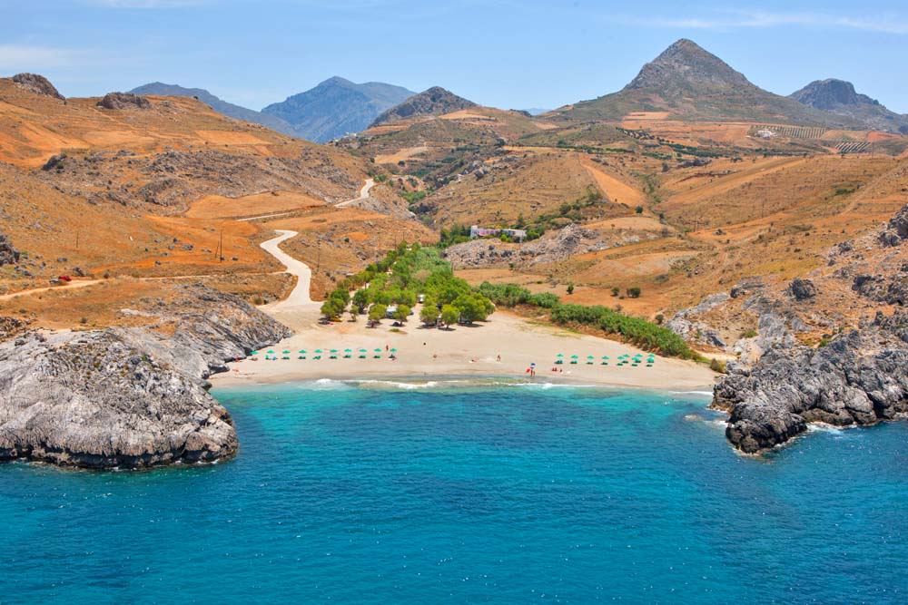 This one is one of the most beautiful beaches of Crete, featuring a river with small waterfalls and palm trees, a must see for everyone. But this kind of astonishing natural beauty comes at a price as you can’t reach the beach by car. Once you arrive at the beach you will find a small restaurant plus some umbrellas and sun beds to rent.