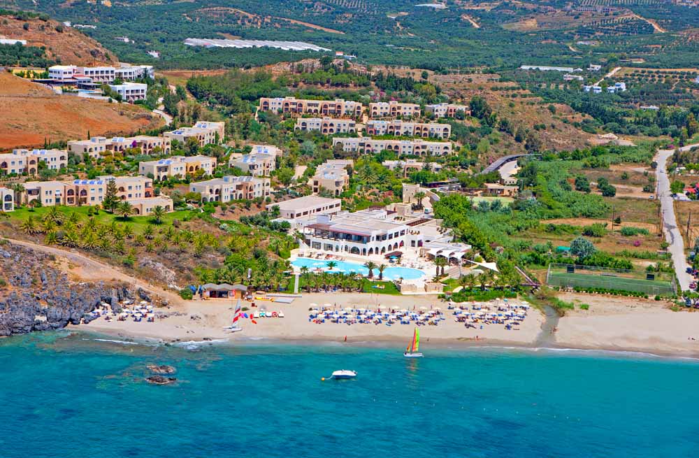 Georgioupoli is a small town located 38km southeast of Chania. Its large beach is stretching for 1.5km and it is part of a 10km long beachfront extending to the east. The beach is sandy with nice clean waters and it is very well organized with umbrellas, sea beds and facilities for water sports while lifeguards operate by the sea shore.