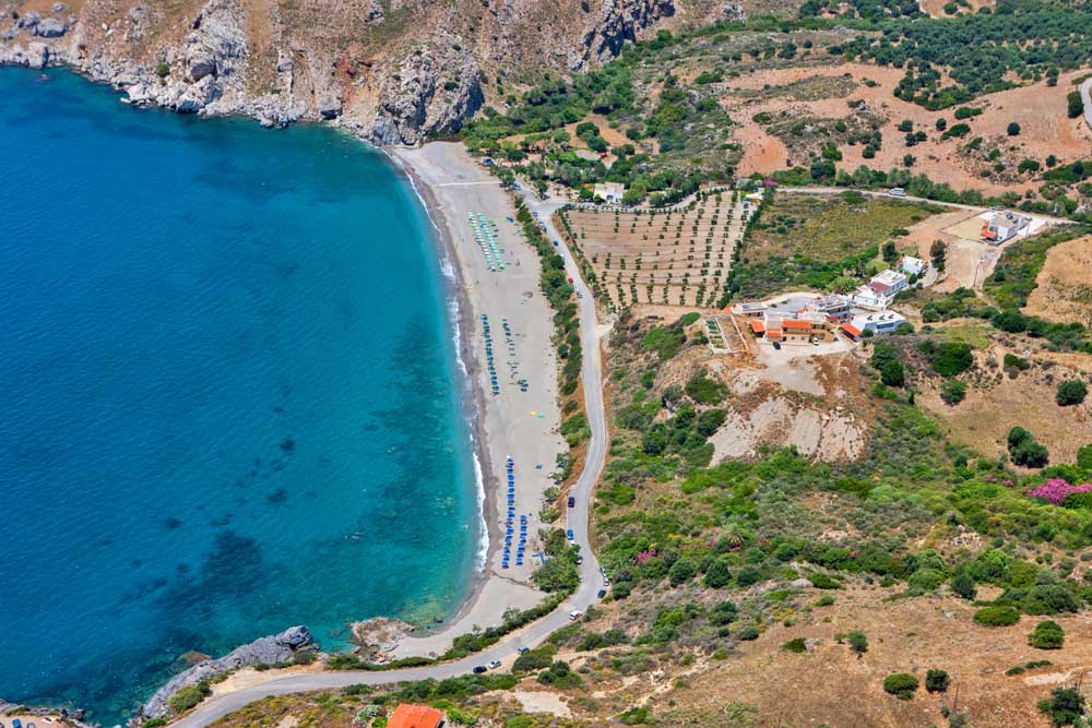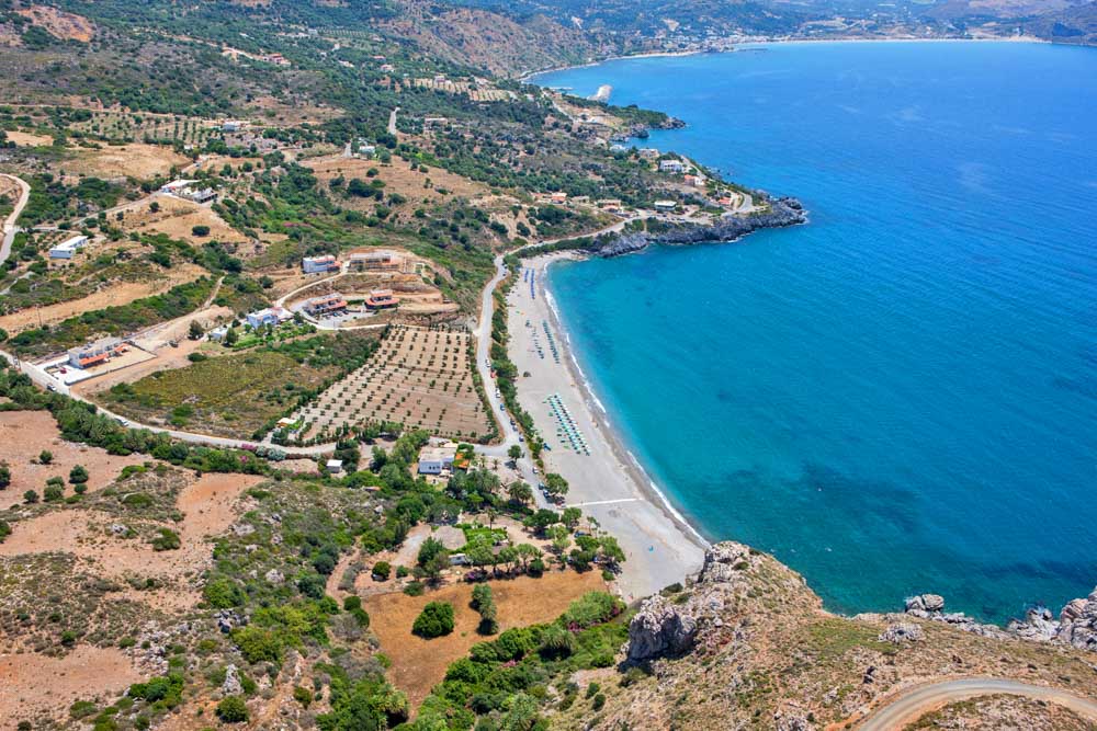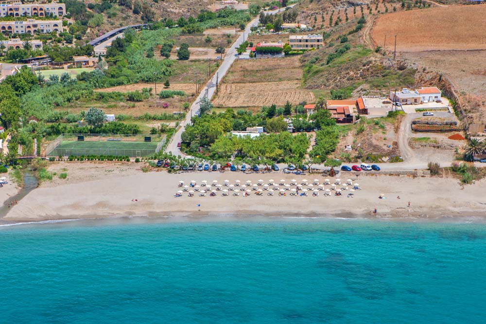 The beach is the last of the many beaches of Plakias and it is located 41km southwest from Rethymno. Situated at the end of a small valley and the outfall of the small river Finikas it is a beautiful sandy beach with beautiful scenery and one of the places where you can see native Cretan palm trees. Umbrellas for rent, showers and some taverns can be found on this beach and the area around it.