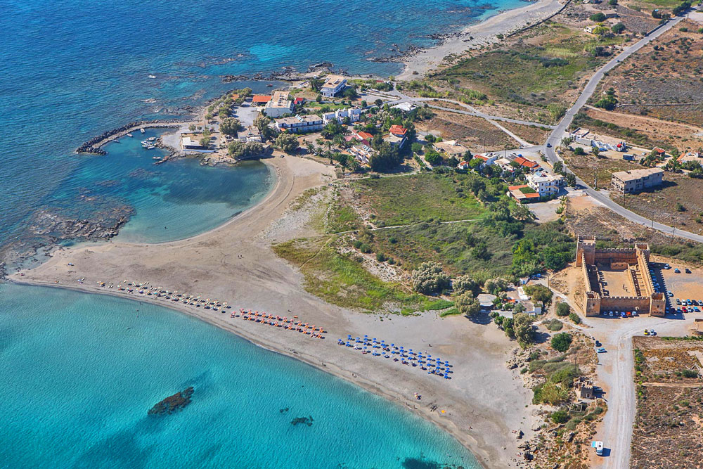 Fragkokastelo is located 60km from Rethymno in the area of Sfakia and takes its name from the great Venetian castle that over watches the area. There is a number of beaches in the area covered in white sand and some basic tourist facilities but the most beautiful and popular is the one in front of the castle. It is a long beach with sand dunes and crystal clear, warm waters.