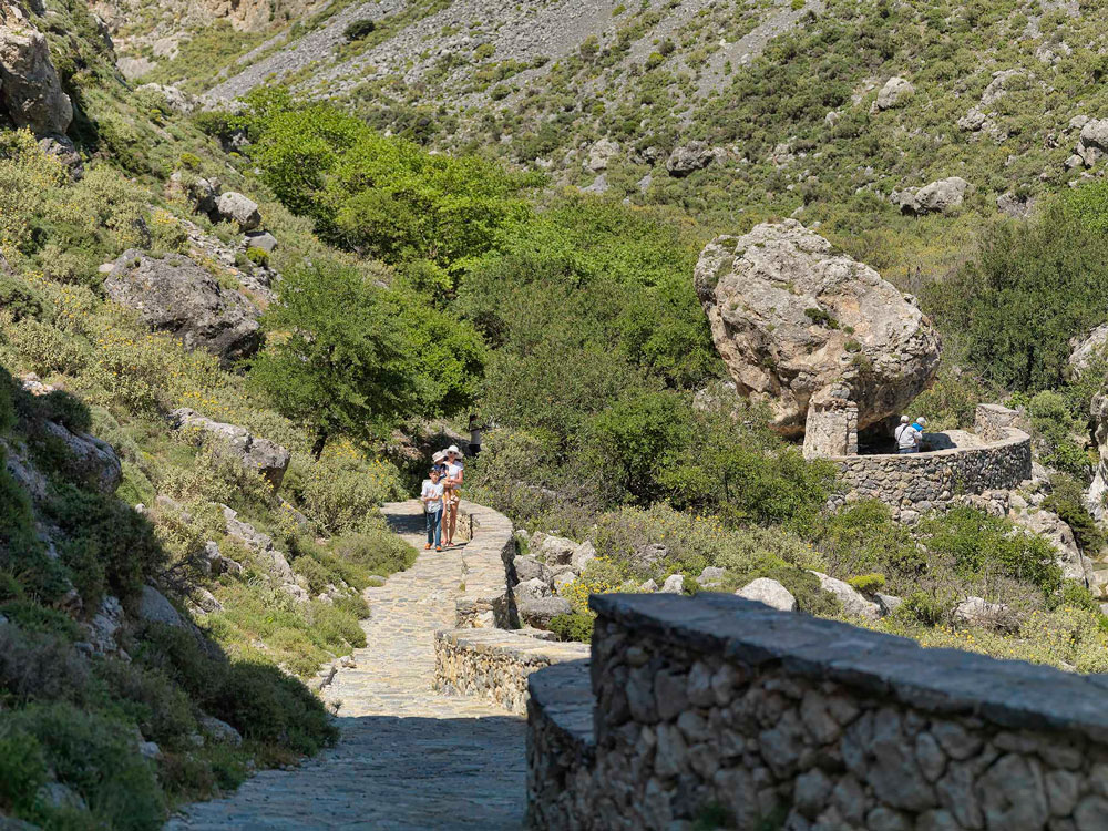 Named after the Kourtaliotis or Big River, this extraordinary gorge is famous for the variety of Cretan birds and wild animals that live there and for its impressive natural scenery. The river’s water have to travel a long way under old bridges and over beautiful waterfalls before it can reach the sea and the palm trees of Preveli beach. The gorge is 3km long with cliffs of 600 meters in height and along with the neighboring lake of Preveli, is part of the Natura 2000 Network.