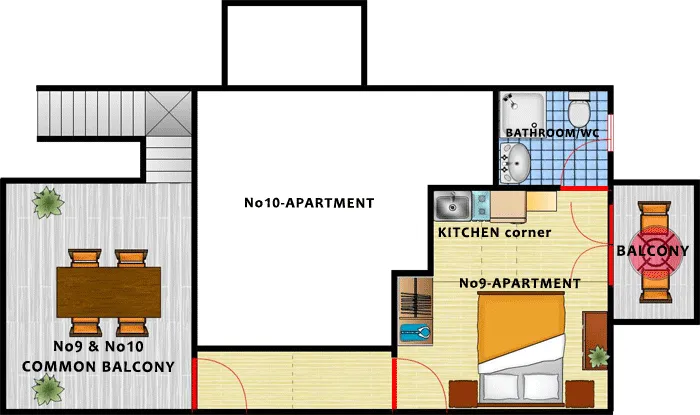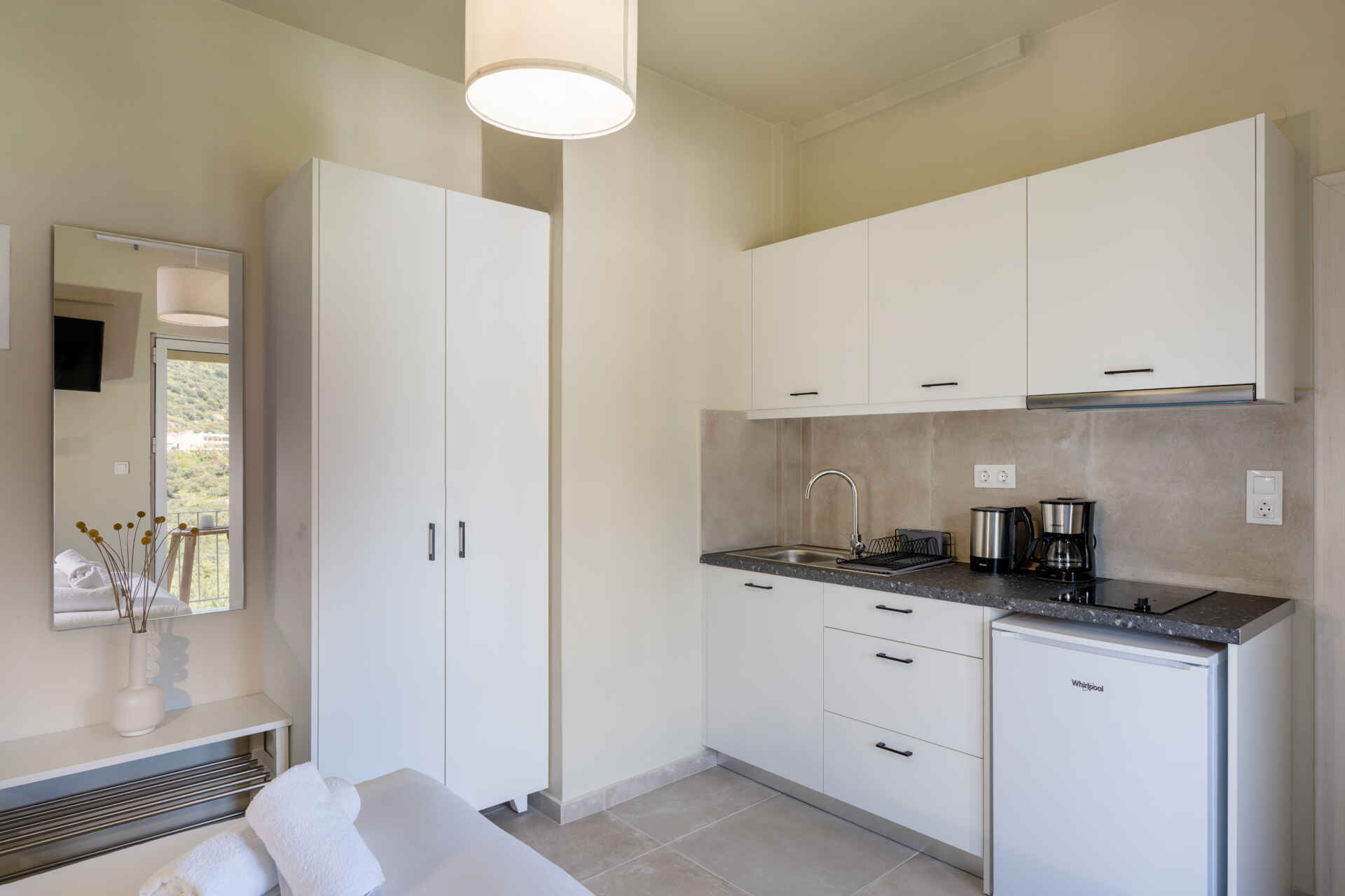 Fedra Studio No 9 is a single-room studio(20 sq.m) located on the top floor of the building and comes with: