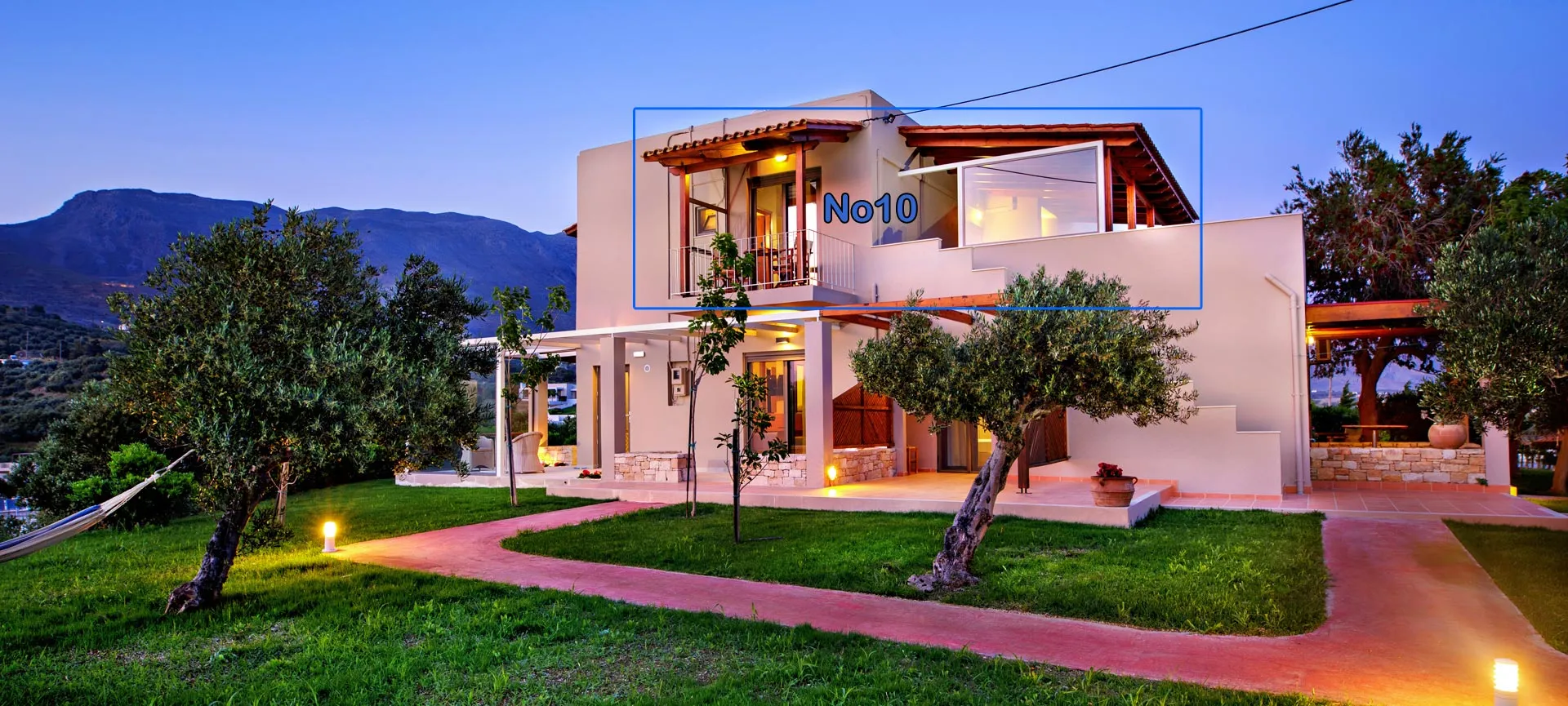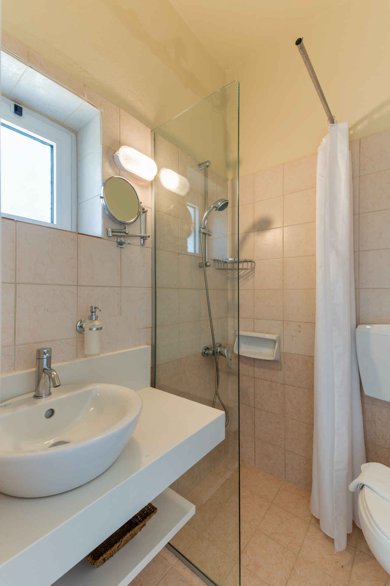 Α second very big balcony (40 sq.m.), decorated with traditional wooden tile roof and view to the mountains and the sea. This huge balcony is in common use for the customers of the next door studio No 9.