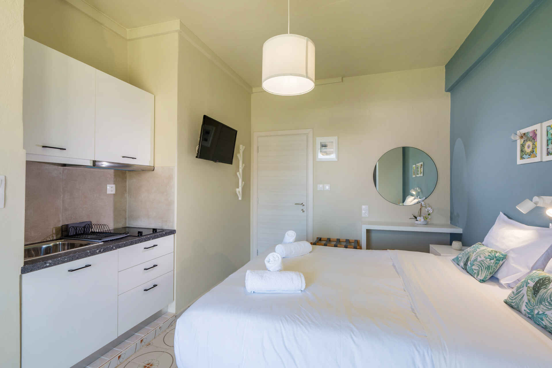Fedra Studio No 10 is a single-room studio(20 sq.m) located on the top floor of the building and comes with: