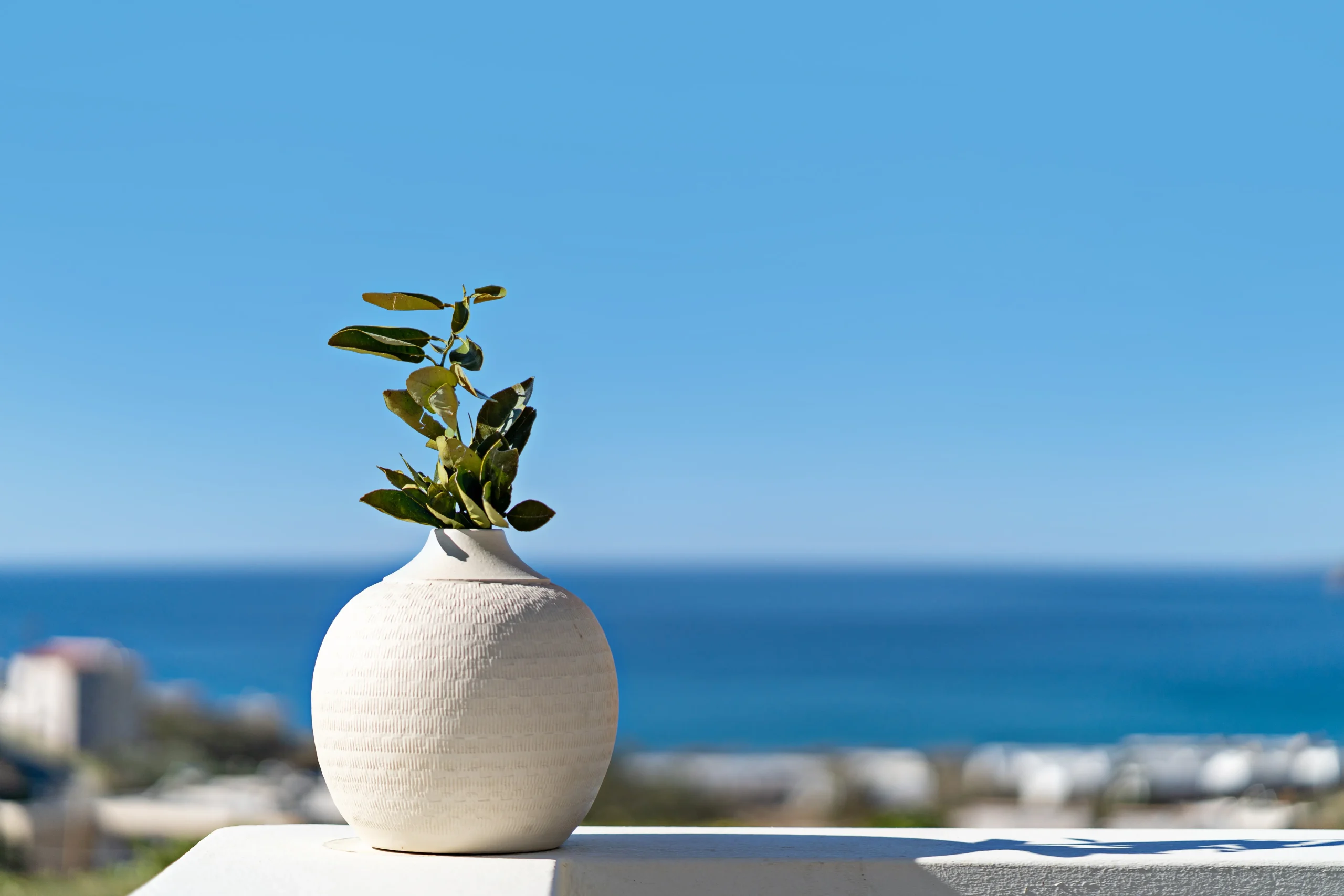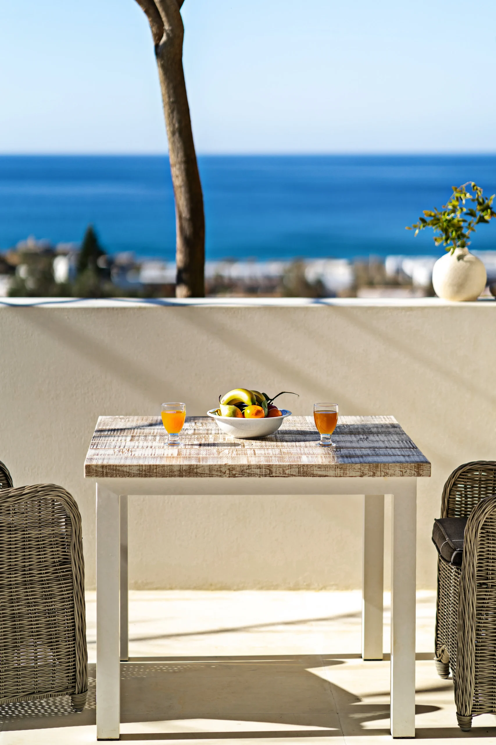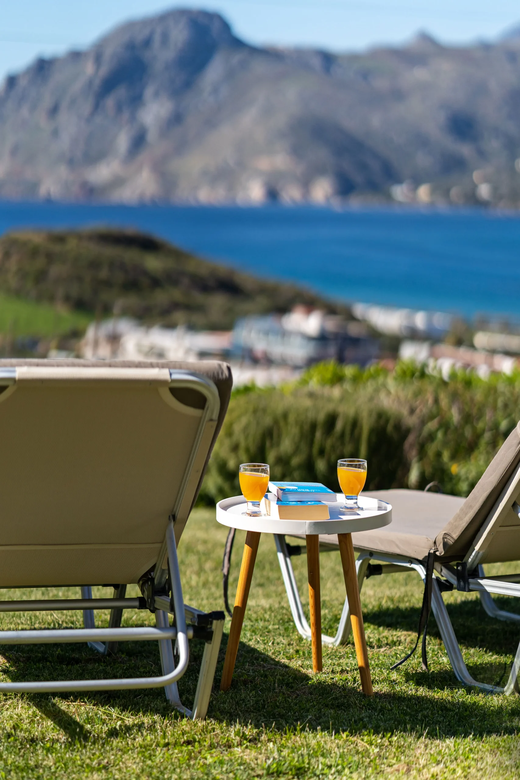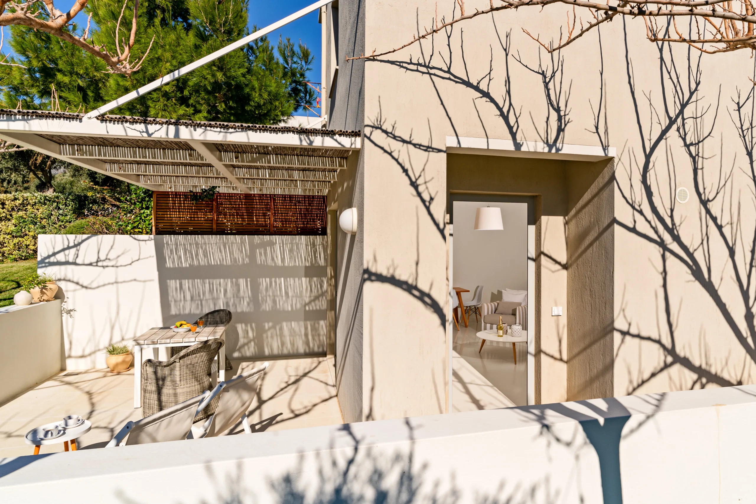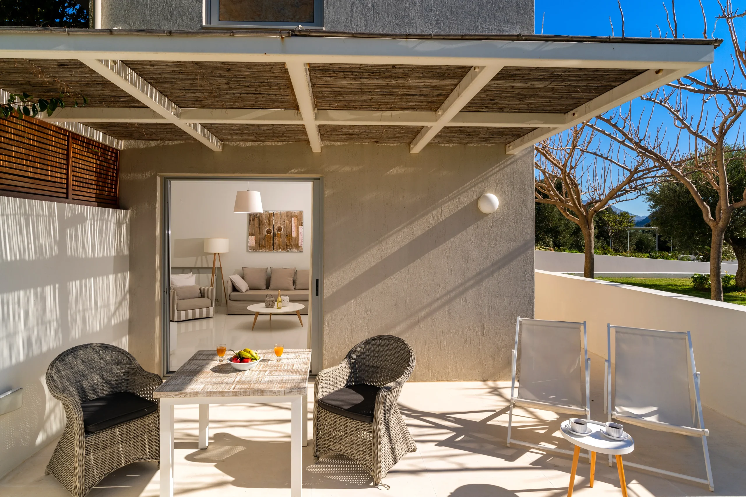 One main balcony outside the sitting room covered with wooden pergola viewing the green garden and the Plakias Beach.